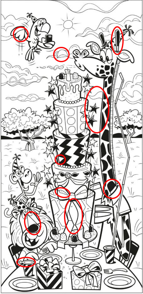In this picture find: hat, fish, teacup, ice-cream cone, ring, pennant, baseball bat, carrot, heart, sailboat.