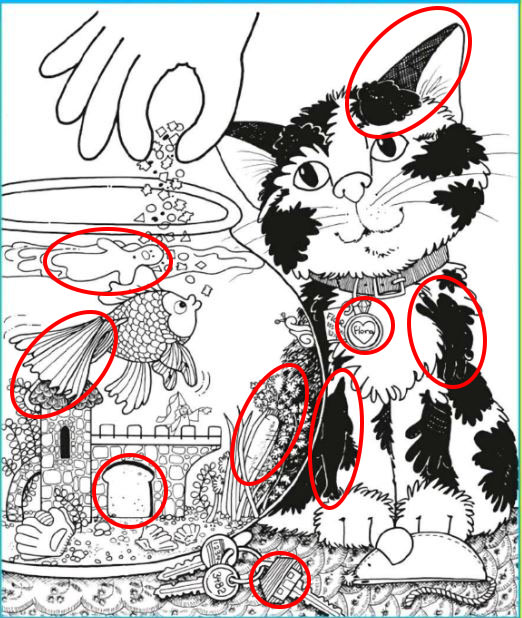 In this picture find: dolphin, rabbit, carrot, ice-cream, ghost, house, slice of bread, ring, umbrella.