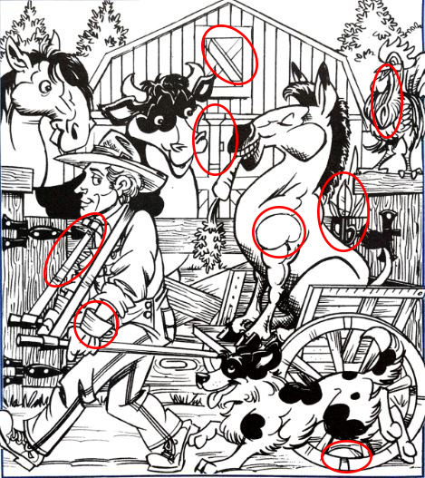 In this picture find: apple, hammer, flashlight, spoon, scissors, mushroom, sailboat, teacup.