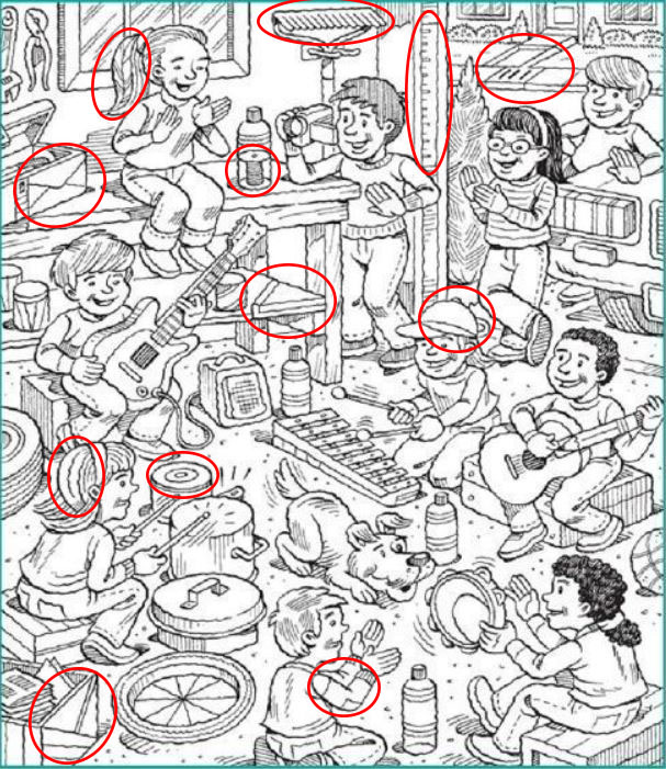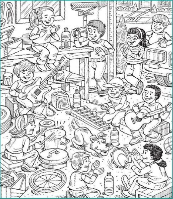 Hidden Picture: Garage Band.