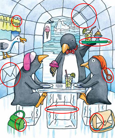 Can you find the hidden objects: arrow, magnifying glass, needle, candle, envelope, crown, sailboat, book.