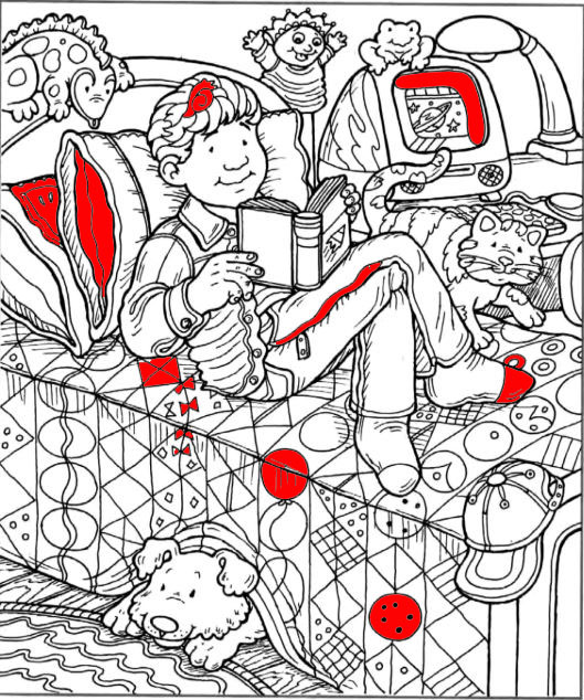 In this picture find: balloon, biscuit, teacup, snail, boomerang, slice of pie, kite, snake, pea pod.