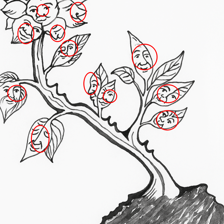 This remarkable illustration of a tree with faces among its leaves is more than just a drawing — it’s a conversation between nature and humanity. It invites you to pause, observe, and rediscover the joy of seeing hidden wonders.
