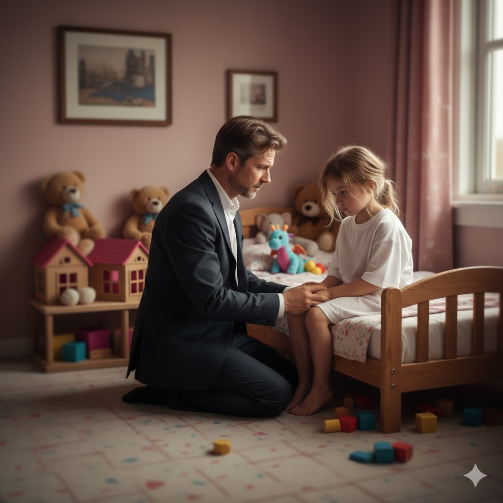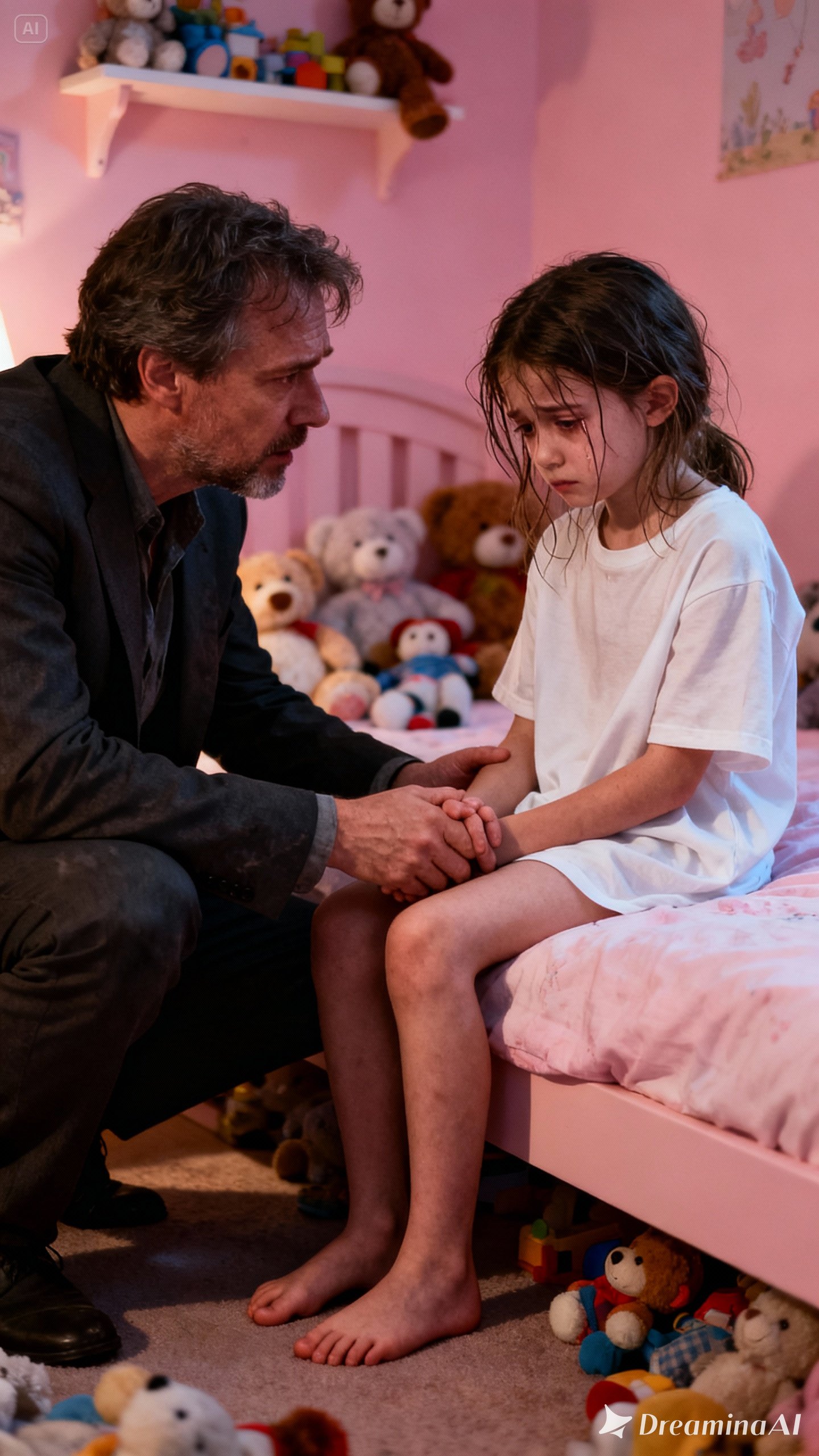 “My love, you can tell me everything. I am your father. I am here to protect you. No one is going to hurt you if you tell me the truth.”