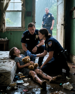 Inside, the air was stale, tinged with chemicals. They found Mia lying on a child’s bed, clutching a worn teddy bear. Her skin was flushed, her legs stiff and red.