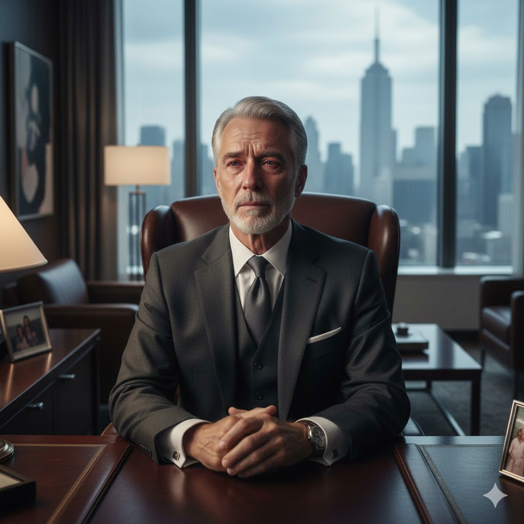 Behind a massive desk sat a silver-haired man in an expensive suit. When he looked up, his eyes were red.