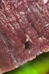 Curious, I later researched and learned that such sensors are sometimes used in industrial farming and slaughterhouses to monitor animals or their transportation. But these devices are always supposed to be removed before the meat reaches consumers. How this one slipped through the process and ended up in my dinner remains a mystery.