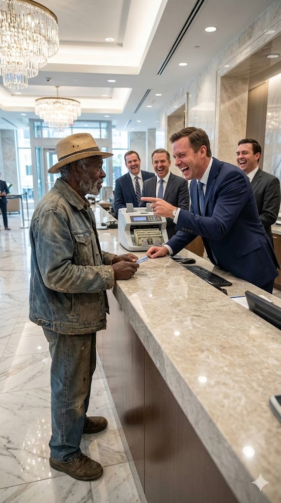 A murmur rippled through the lobby. Shock replaced ridicule. Disbelief swept the room. The elderly woman pressed a hand to her chest. Someone gasped aloud.