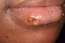 - Outbreaks usually appear as sores around the mouth, nose, chin, or cheeks.