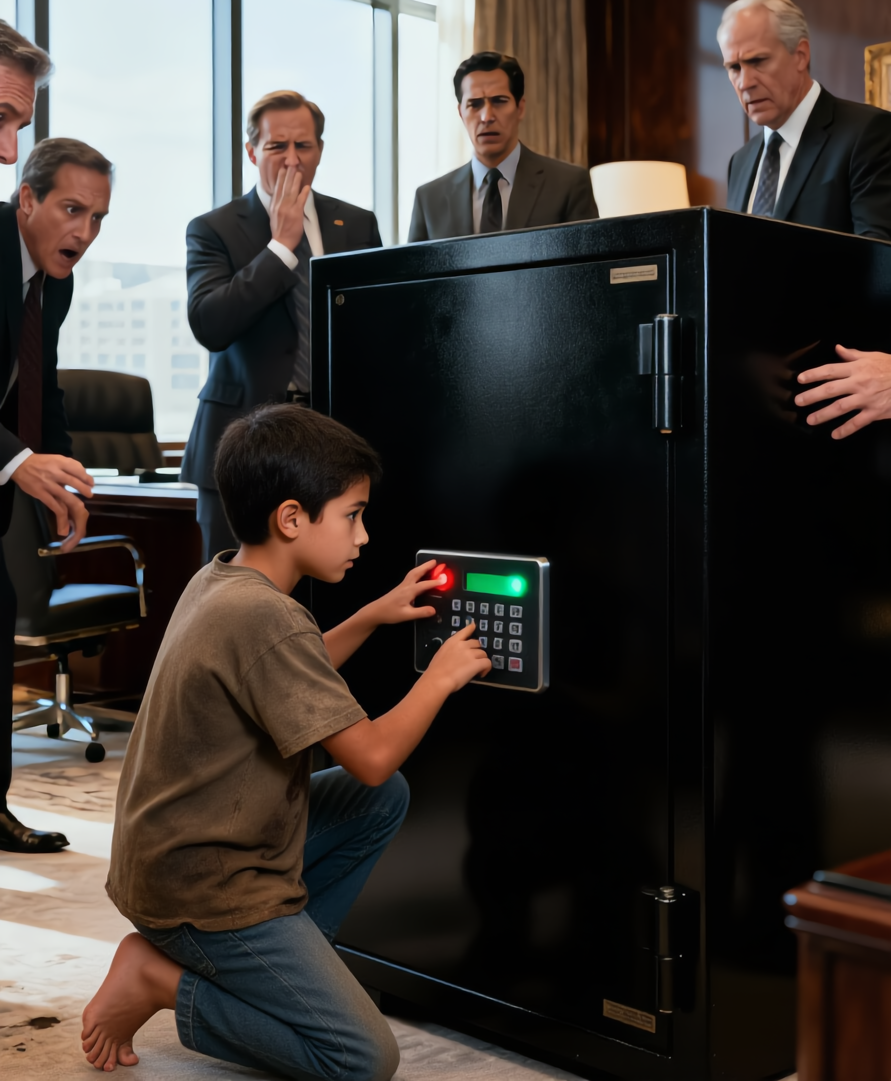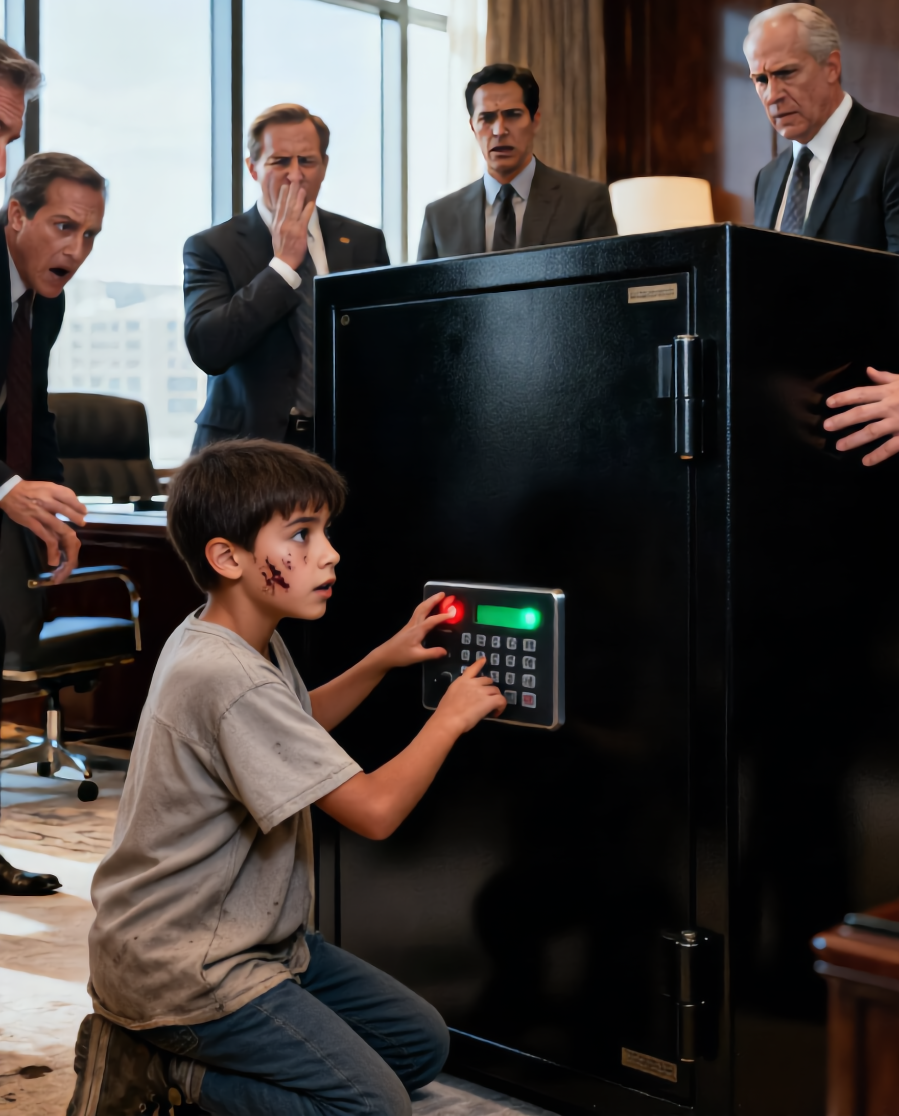 And for the first time in that office, power shifted—not because a safe was opened, but because someone brave enough to speak the truth had walked in barefoot and left everyone exposed.