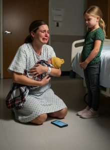 Their 10-year-old daughter, Emily, stood silently near the window, her phone clutched tightly in both hands. She had begged to come, eager to meet her baby sister. Sarah had expected excitement—questions, giggles, maybe even a bit of jealousy. But instead, Emily’s hands trembled as she lowered her phone and whispered, almost too quietly to hear: