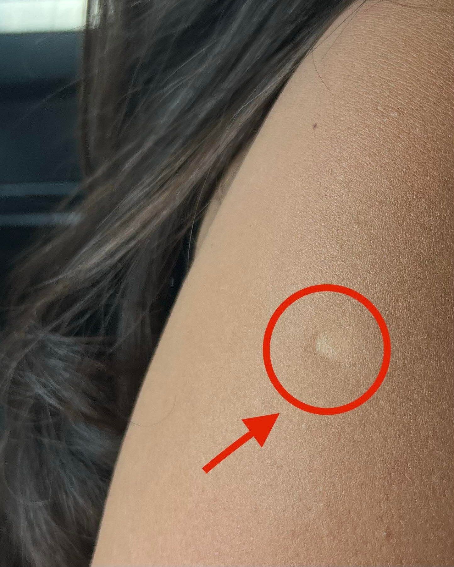 My cousin and I just discovered a little scar on our arm, and we both have it in the same spot. Can someone explain what this is?