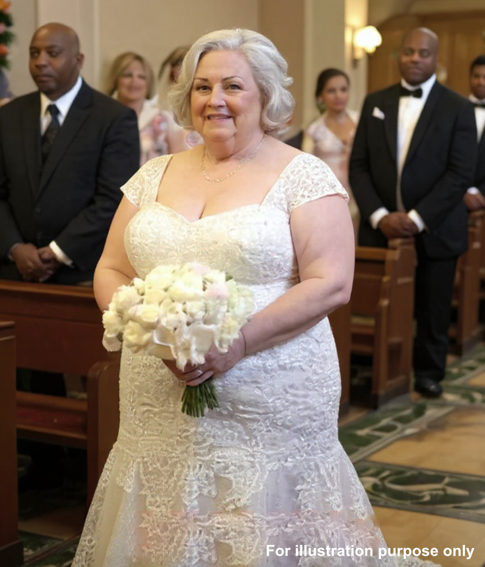 The ivory satin caught the light like rippling water, and the delicate lace sleeves looked almost hand-stitched by angels.