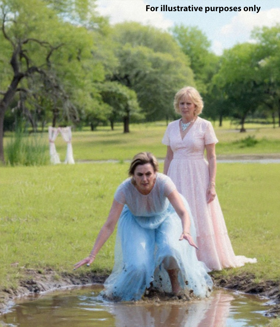 The light blue dress was instantly covered in thick, dark mud. Guests gasped. Marie dropped her camera. Alma just stood there, hand over her mouth like she was shocked.