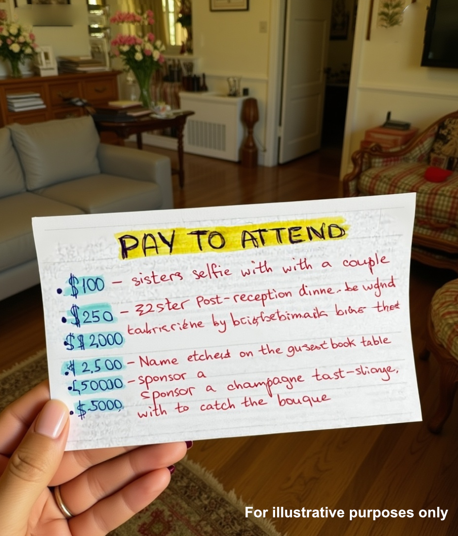 I reread it, sure it was a prank. The note at the bottom read: “All guests must select a participation tier to support our dream wedding.”