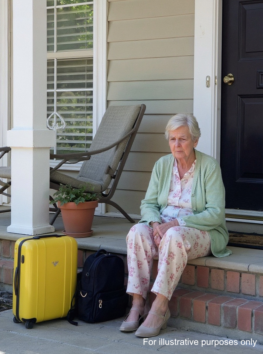 Minutes later, I stood on the porch with my bags at my feet. My hands shook as I wiped tears. The door closed behind me without a word.
