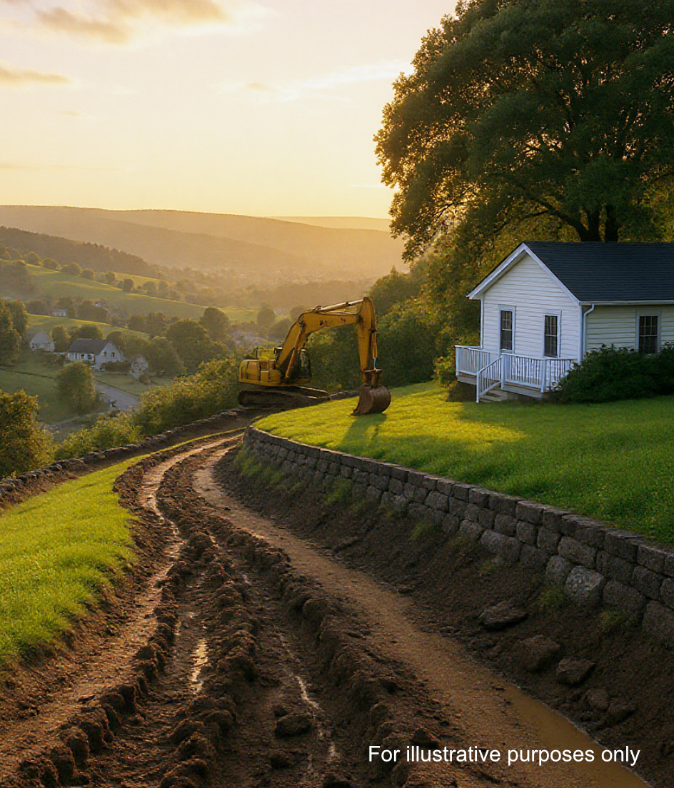 When they got home, a scar ran across their yard—a switchback driveway for the next lot, clearly on their property. Clarence, calm but curious, approached the excavator operator.