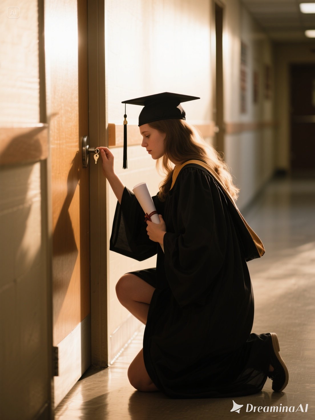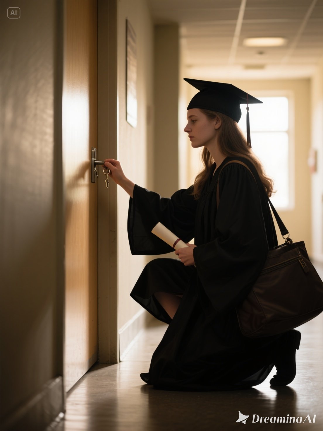 Behind me, slowly, the diploma—still wrapped in plastic—fell to the floor from its own weight.