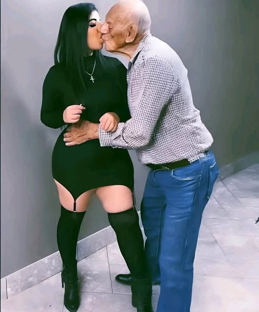 That’s why a photo like the one going viral — a sharply dressed young woman locking lips with a senior gentleman who’s clearly loving life — sends the internet into a frenzy.