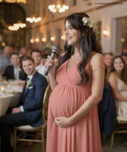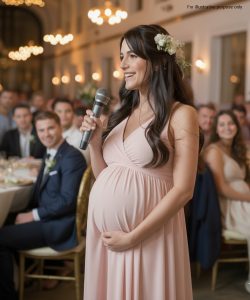 The most unexpected thing was that she arrived with a pregnant belly to congratulate us. Her appearance was a bit of a shock and drew everyone’s attention. Whispers filled the room; no one knew what was going to happen.