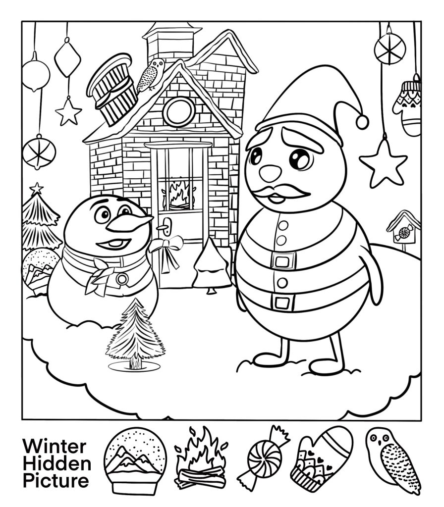 When was the last time a coloring page made you pause and wonder what the story behind it was? That’s exactly what happens with this beautifully illustrated scene—a quirky, snow-covered village, complete with expressive snowmen, gingerbread decorations, and the warm glow of a fire behind frosty windows. It’s not just a drawing; it’s a snapshot of a moment bursting with personality and imagination.