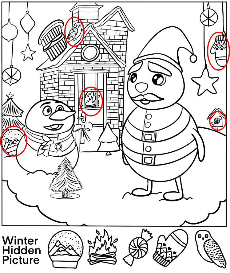 At first glance, this winter scene might just look like another holiday coloring sheet. But take a closer look, and you’ll see it’s packed with emotion, personality, and storytelling potential. From the expressive snowmen to the cozy cottage and hanging ornaments, every detail invites you to wonder, color, and create.