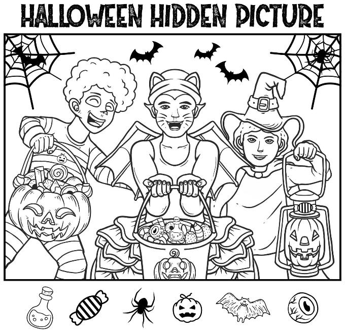 A Spooky Night of Fun: Hidden Objects in a Halloween Trick-or-Treat Scene