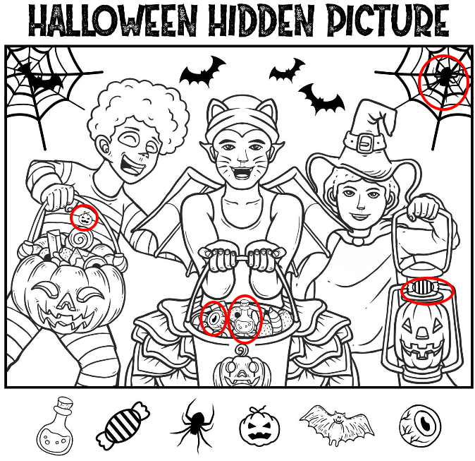 This playful Halloween illustration isn’t just about candy and costumes—it’s a puzzle designed to sharpen your focus and spark your imagination. From the buckets of treats to the bats in the sky, every detail hides the potential for discovery. Just like trick-or-treating itself, the fun comes not only from what you see at first but from the surprises waiting when you look a little closer. The next time you dive into a hidden object puzzle like this, remember: the real magic of Halloween isn’t just in the candy—it’s in the thrill of finding the unexpected.