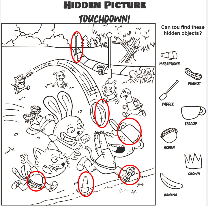 Would you like me to expand this into a hidden-object puzzle narrative, where readers search for details like the turtle, the flying ball, or the cones, making it more interactive and fun?
