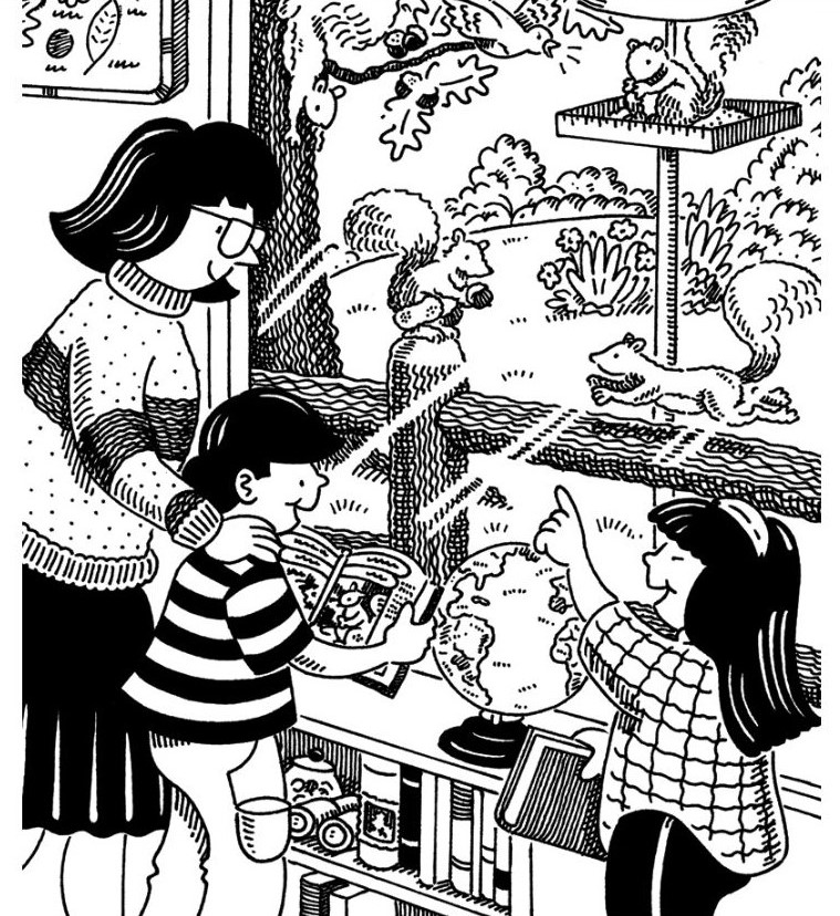 There’s something charming about watching wildlife from the comfort of your home. In the illustration above, a family stands at their window, taking in a lively outdoor scene where energetic squirrels dart around. At first glance, it looks like a simple, heartwarming moment—a mother pointing things out as her children watch in awe. But the more you study the picture, the more hidden elements start to reveal themselves. Much like a classic seek-and-find puzzle, the image encourages you to pause, look closer, and spot the tiny surprises tucked away in the artwork.