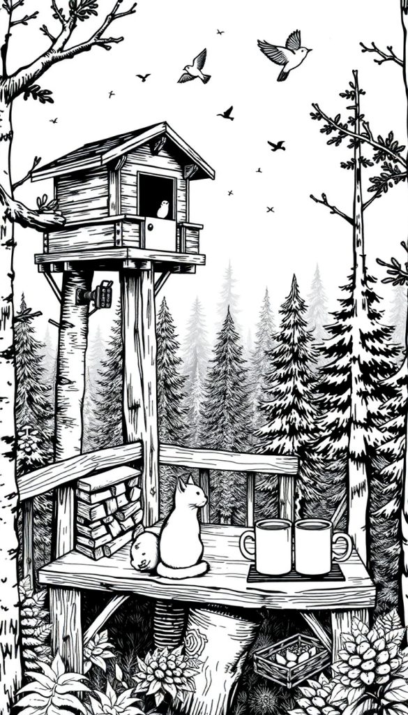 Imagine waking up to the gentle chirping of birds, the aroma of fresh pine, and two steaming mugs of coffee waiting on a rustic wooden deck. You step outside onto a cozy treehouse perch, where a curious cat gazes at the treetops and a friendly bird watches from its nearby nest box. This is more than just a vacation spot—it’s a sanctuary for the soul, a place where time slows down and nature’s harmony takes center stage. If you’ve ever dreamed of escaping the noise of daily life, a forest treehouse retreat might be the perfect haven.
