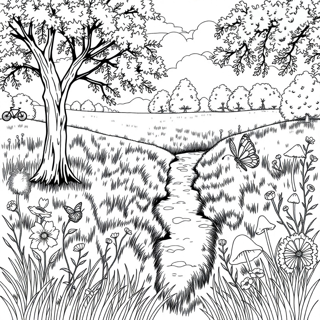 The image of the peaceful countryside path reminds us of the value of spending time outdoors and reconnecting with the natural world. Whether we are walking, cycling, or simply sitting under the shade of a tree, nature offers an opportunity to pause, reflect, and restore our mental well-being. The beauty of wildflowers, trees, and the open sky brings a sense of tranquility that we can carry with us long after we leave the meadow.
