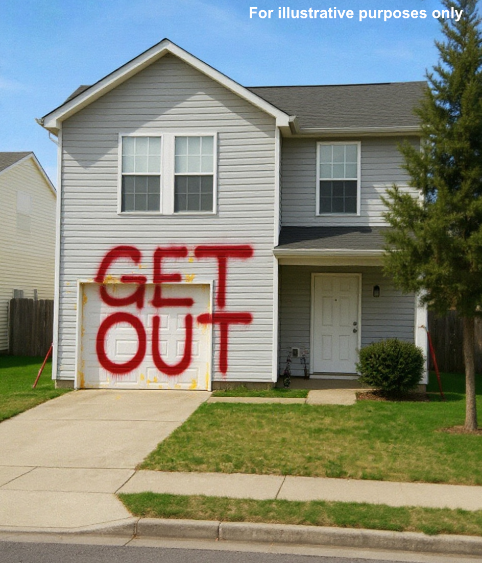 The boys skipped ahead, laughing, until we reached the driveway. Spray-painted across our house in jagged black letters: GET OUT!