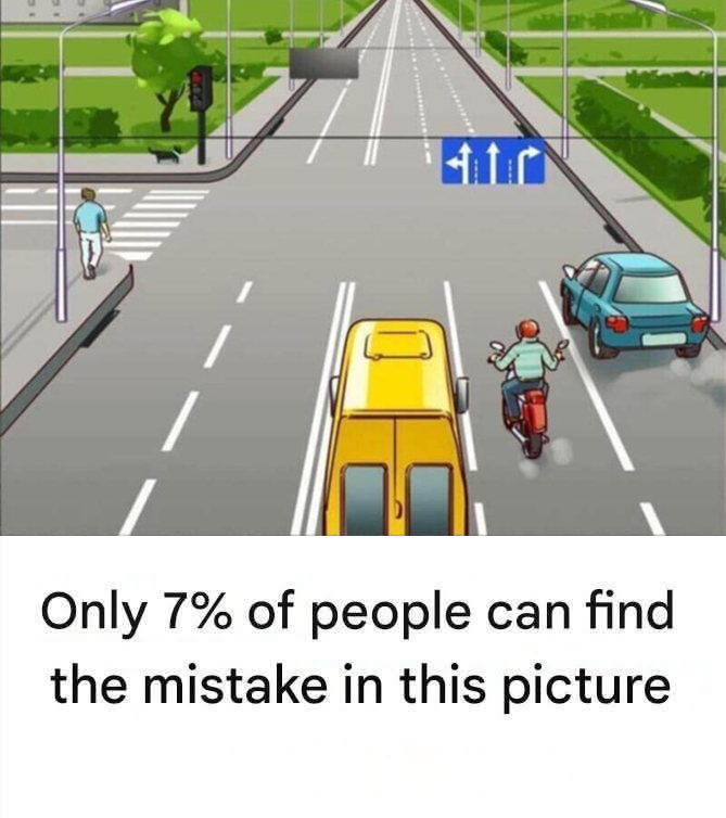 Well, if you spotted the mistake quickly in 11 seconds, then you have exceptional observation skills, a high IQ level, directional sense, road safety knowledge, common sense, and an alert and sharp brain.