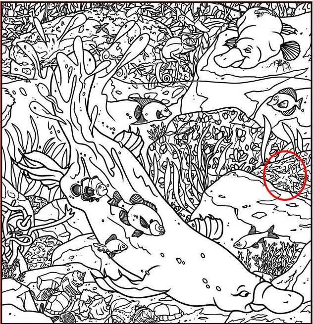 The seaweed, too, is suspiciously complex. Its flowing shapes create patterns that make the brain imagine familiar outlines. This is where you’re most likely to find the puzzle’s best-hidden surprises.