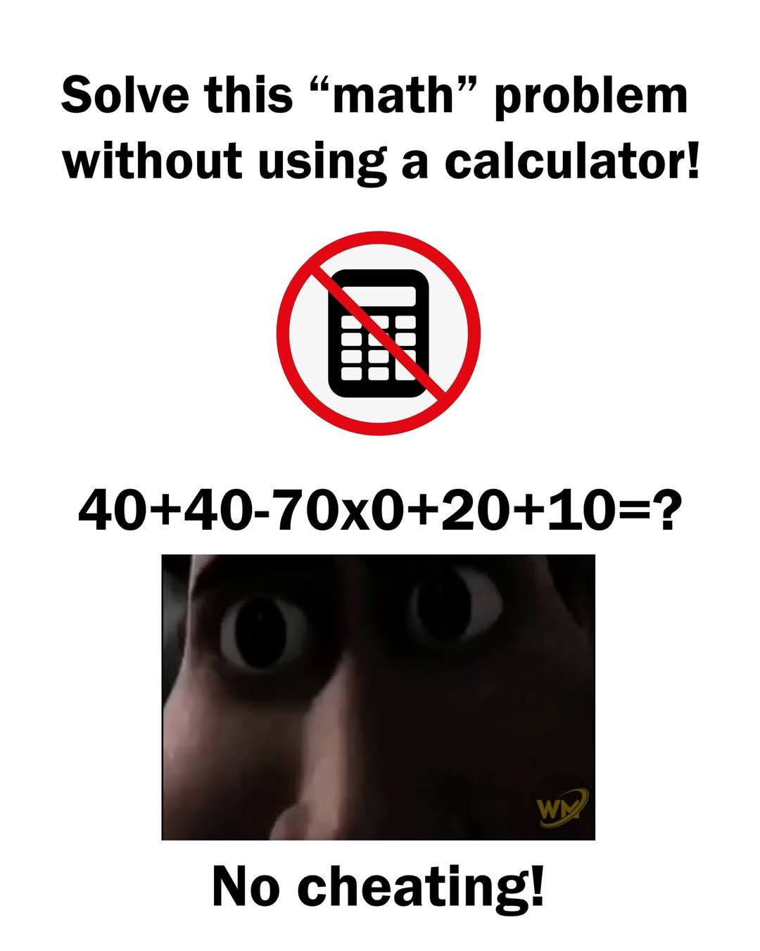 40 + 40 – 70 × 0 + 20 + 10