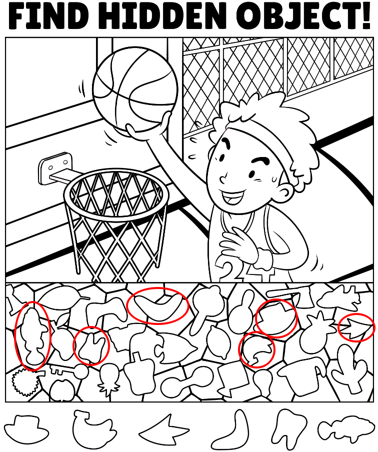 The bottom section of the image, filled with random outlines, is like a treasure chest. Each shape represents a hidden gem you must uncover in the main picture. From a hat to a leaf, every piece adds a touch of fun and whimsy, turning a fast-paced sport into an engaging brain teaser.