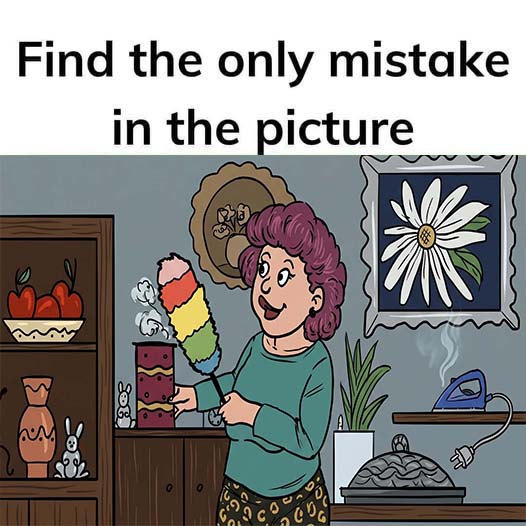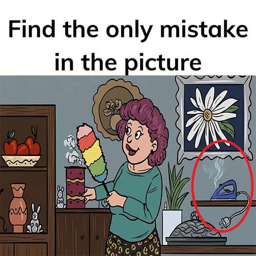 There’s a mistake! The iron isn’t plugged in, but it’s smoking.