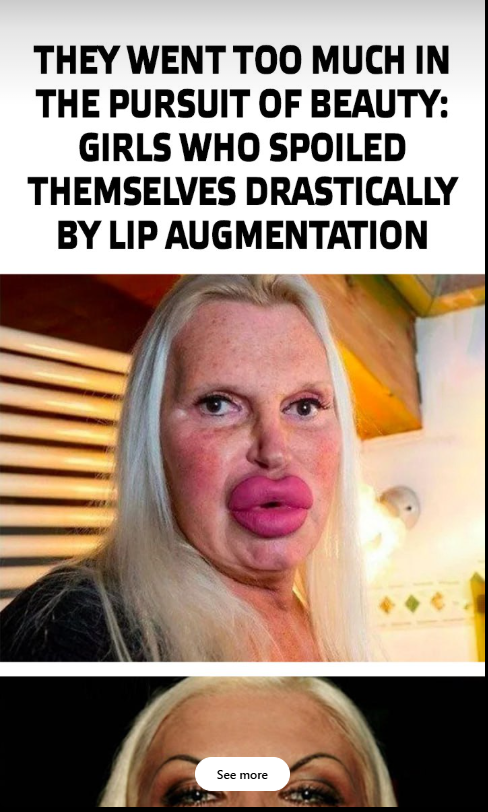 In recent years, large lips have been the main sign of beauty. For the sake of this, girls go to drastic measures. It’s hard to say for sure if it’s beautiful or not, but some girls turn to it without even thinking if it suits them. These girls have tried to be so wonderful and attractive but they went far spoiling their appearance instead of making it more charming.