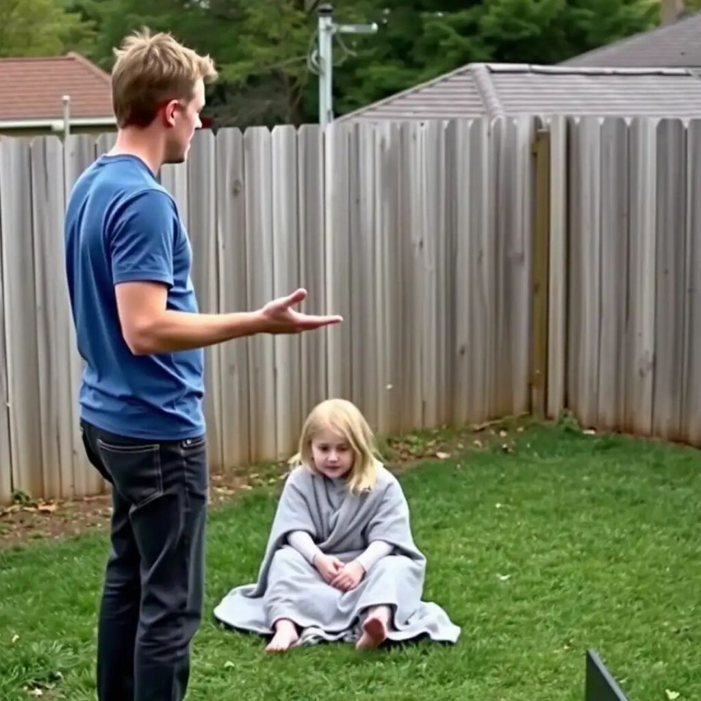Emma was sitting alone in the far corner of the yard, wrapped in a thin, dirty blanket. Her hair was tangled, her clothes dusty.