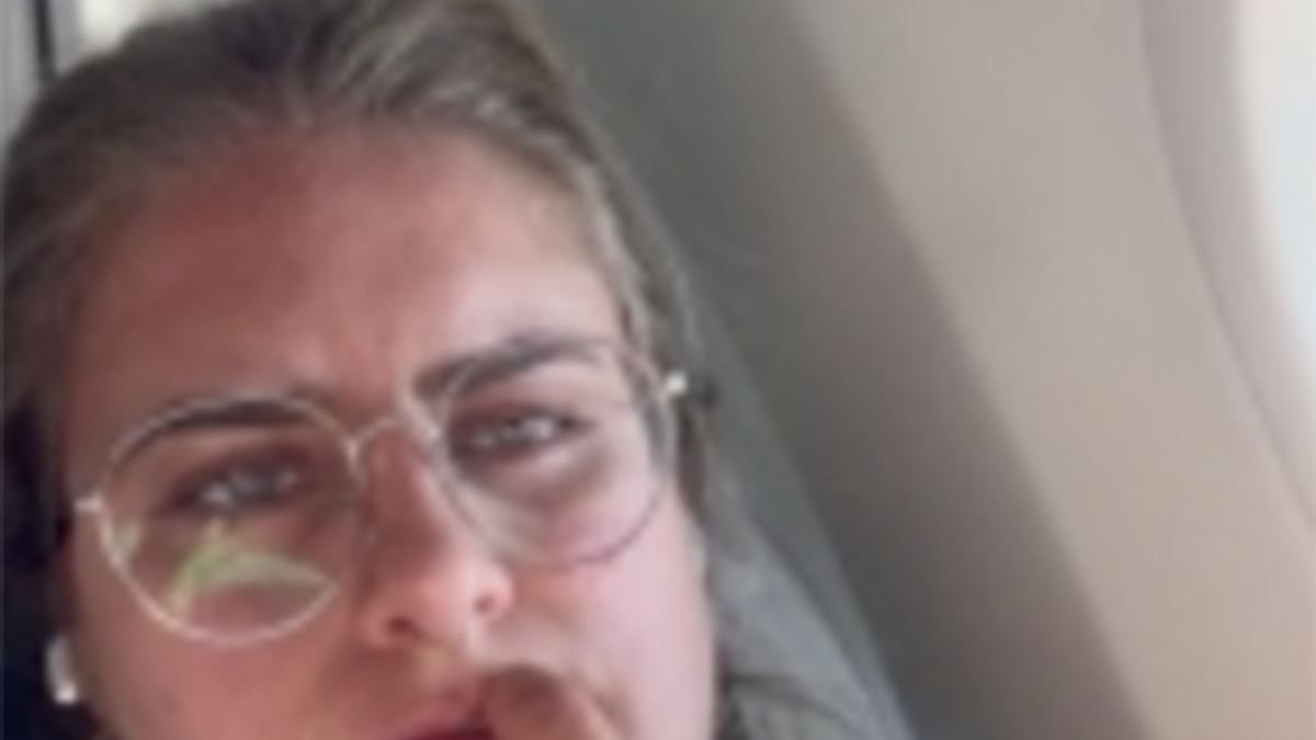 Fanny Gagnon O’Donnell (pictured here) was on a flight from Spain to Germany when the person next to her in the middle seat continued to cross into her seat. (Fanny Gagnon O’Donnell/Storyful)