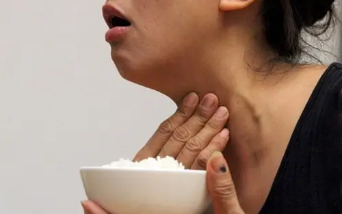 Suffering from a prolonged choking sensation, thought to be a stomach problem, the woman accidentally discovered that her thyroid gland had CAN.CER
