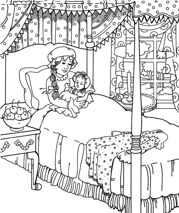 There’s something timeless about the quiet beauty of a bedtime moment. In this charming illustration, a mother sits up in her four-poster bed, cradling her baby tenderly under soft curtains and a moonlit window. The scene feels like a story from long ago — peaceful, heartwarming, and filled with hidden details waiting to be discovered. It’s not just a picture; it’s an invitation to explore the warmth of home, the bond between mother and child, and the little secrets tucked within a cozy room.